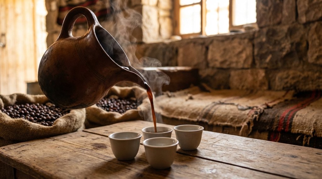 The foam rise. Arwa coffee will foam — sometimes aggressively — as it approaches temperature. The moment you see the foam rising toward the rim, remove the pot from heat. Not reduce heat. Remove it entirely. Let the foam settle completely, then return it to the lowest possible heat setting for another 45 seconds. Do this rise-and-rest cycle twice. The total brew time from cold start to finish is usually 12–15 minutes using this method.