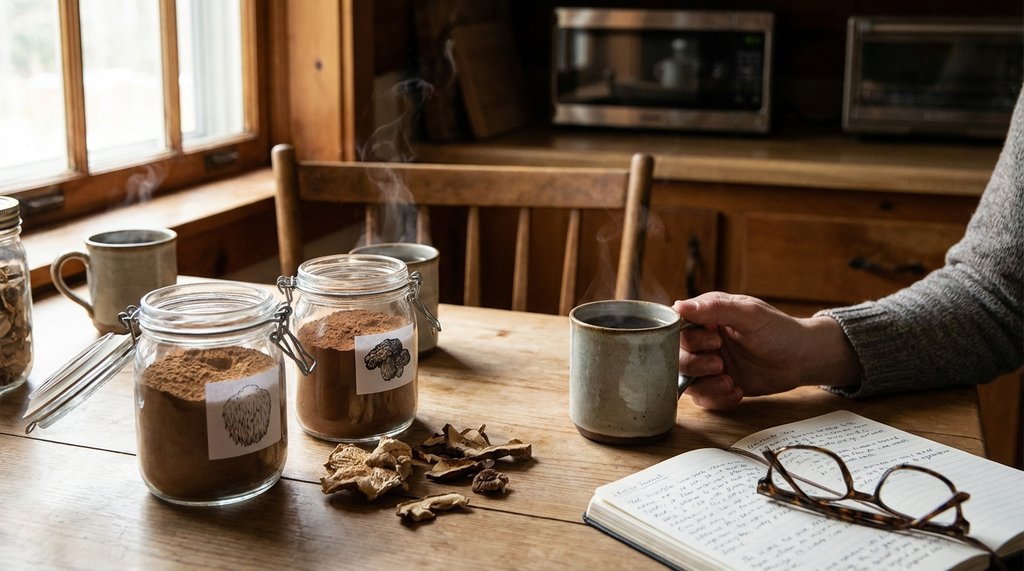 I kept the coffee format for both phases of this trial specifically to match real-world conditions. Most people are not going to swap their morning coffee for mushroom capsules. But if you’ve already tried a mushroom coffee blend and concluded it doesn’t work, I’d try the same extract in isolation before writing off the compound itself. The interaction effects between caffeine and adaptogenic dosing timelines are real and underexamined outside of the manufacturer-funded content ecosystem.