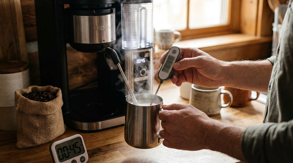 The practical takeaway from that: use cold milk directly from the refrigerator, every time, regardless of season. Not “cool” milk. 38°F refrigerator-cold milk. This gives you the maximum thermal buffer before the element overcooks it, and it’s the single most effective adjustment I’ve found — more impactful than any other variable I tested.